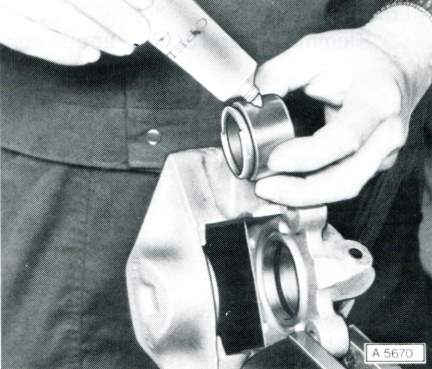 Vor der Montage des Dichtringes auf der Gleithülse ist dieser mit dem im Reparatursatz beiliegenden Spezialfett oder Bremszylinderpaste dünn zu bestreichen. |