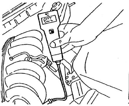 Kabelsatzstecker vom Temperaturfühler abziehen. Temperaturfühler herausschrauben. Achtung: Kühlmittelaustritt!