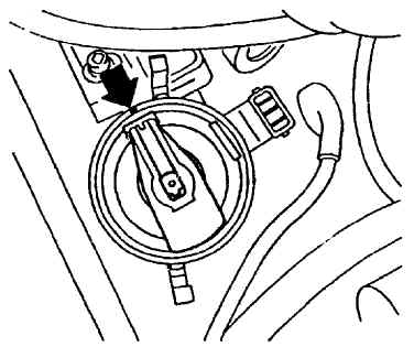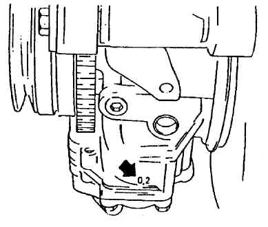 Achtung: Die Mitte des Verteilerfingers muß auf die Kerbmarkierung zeigen, ggf. Zündverteiler drehen. Zündverteiler mit der Befestigungslasche befestigen - 20 Nm.