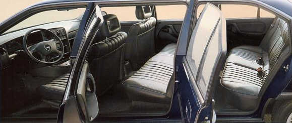 Die Opel-Ingenieure berücksichtigten, daß der Dreipunkt-Sicherheitsgurt nur dann eine optimale Schutzwirkung entfaltet, wenn ein korrekter Gurtverlauf am Körper unabhängig von der Kölrpergröße einstellbar ist. Da Menschen nun einmal unterschiedlich groß sind, konnte die Lösung nur darin bestehen, eine Verstellmöglichkeit für die oberen Gurtanlenkpunkte zu schaffen, so daß der Gurt auch bei kleinwüchsigen Menschen nicht im Halsbereich anlag. Für die vorderen Gurte gab es eine solche Verstellmöglichkeit schon bei hochwertigen Fahrzeugen einiger Mitbewerber, war dort aber oft mit der Längsverstellung der Sitze kombiniert und stellte eine Gurthöhe zwar automatisch ein, war aber im Ergebnis deutlich weniger optimal, als die Lösung beim Omega. Daß Opel dieses System nun auch für die äußeren Sitze im Fahrzeugfond anbot, war eine Weltneuheit. Zudem wurden die Gurtschlösser hinten nicht mehr im Schlitz zwischen Rückenlehne und Sitzfläche durchgeführt, sondern durch eigene Durchführungen in der Sitzfläche, was die Gurtführung weiter optimierte. |